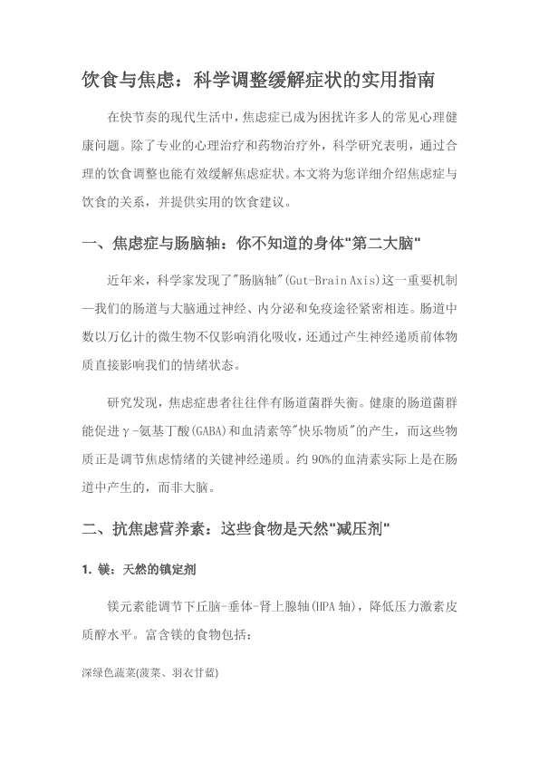 饮食与焦虑:科学调整缓解症状的实用指南
