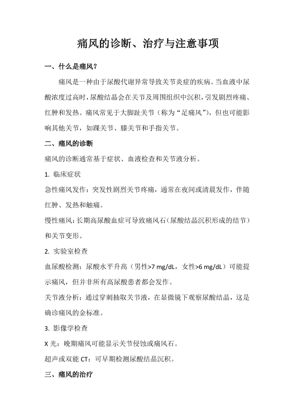 痛风的诊断、治疗与注意事项