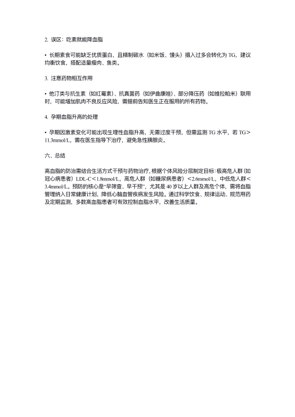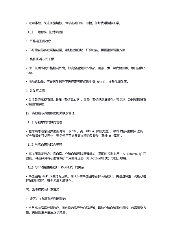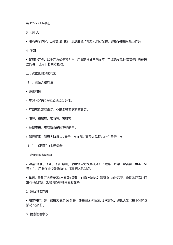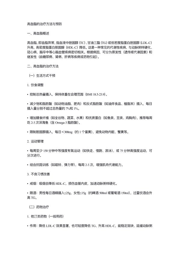 高血脂的治疗方法与预防