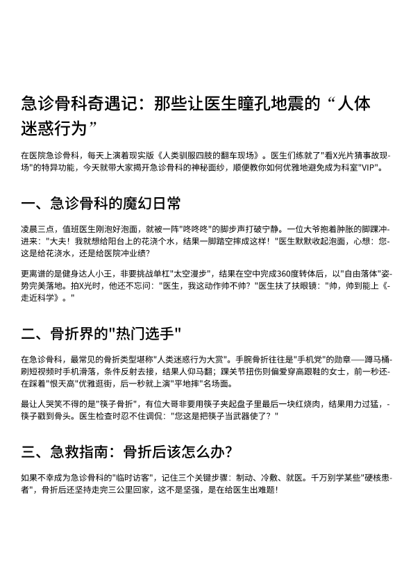 急诊骨科奇遇记:那些让医生瞳孔地震的“人体迷惑行为”