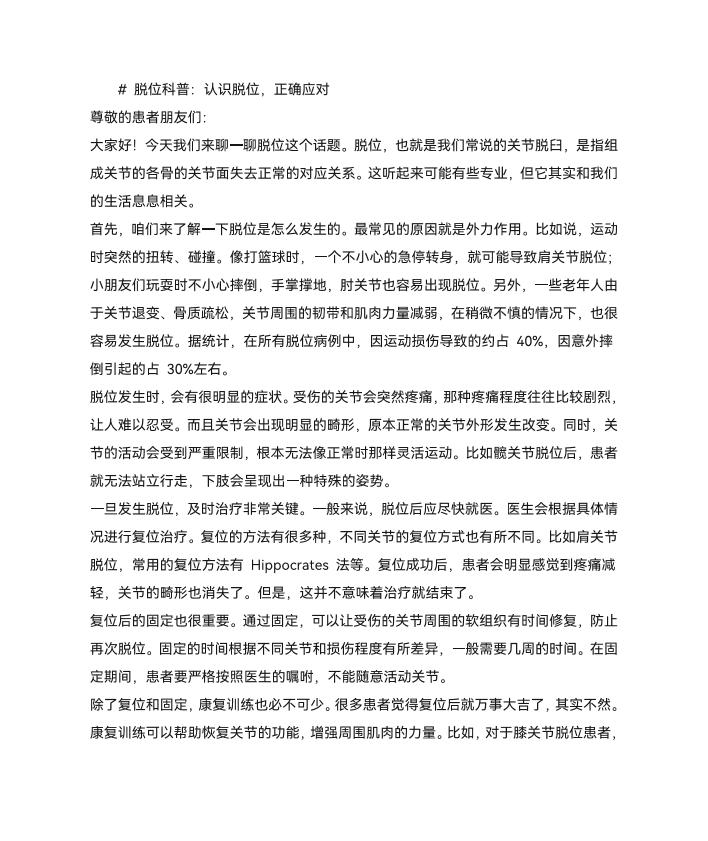 脱位科普