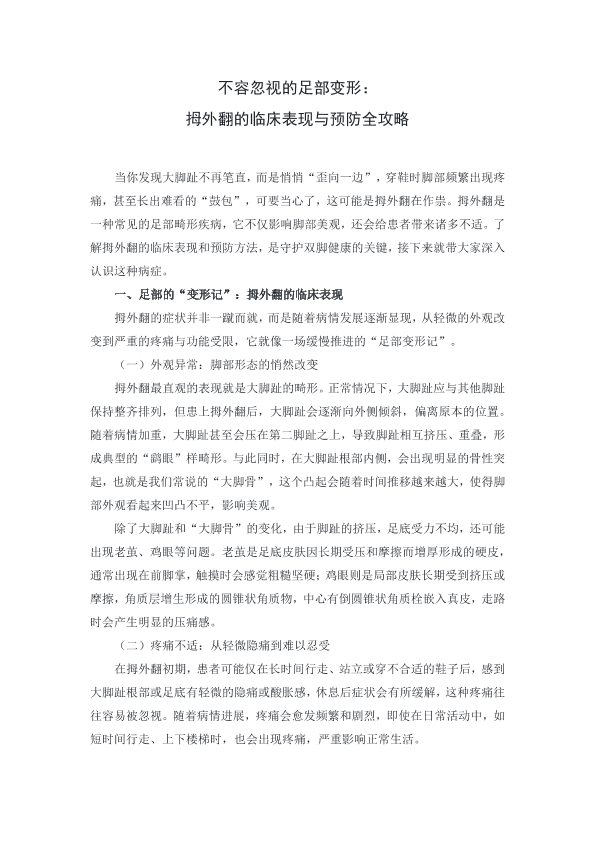 不容忽视的足部变形:拇外翻的临床表现与预防全攻略