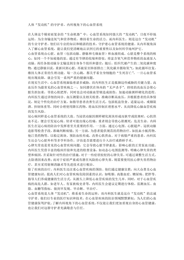 人体发动机的守护者,内科视角下的心血管系统