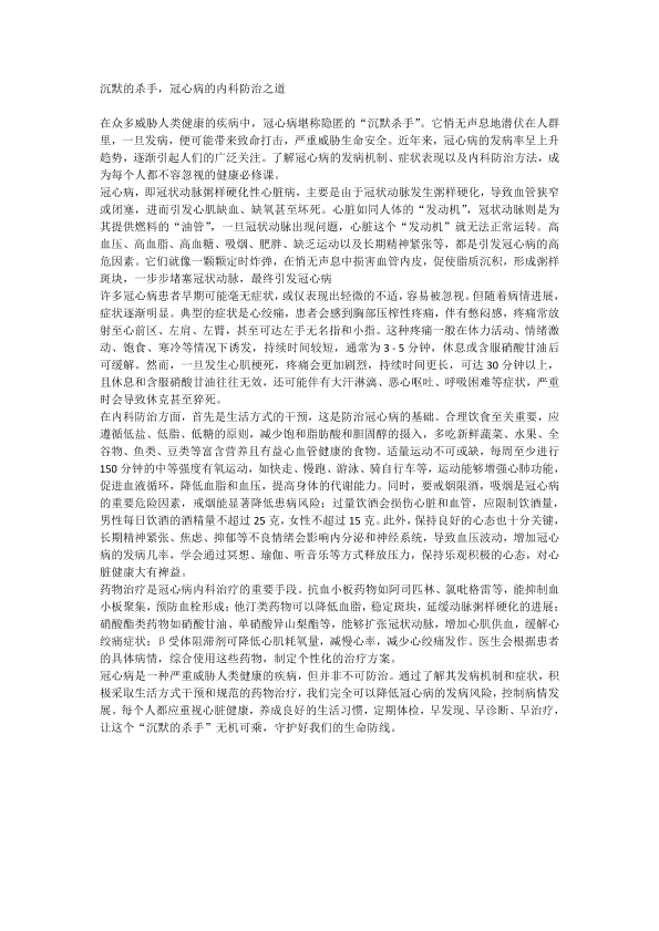 沉默的杀手,冠心病的内科防治之道