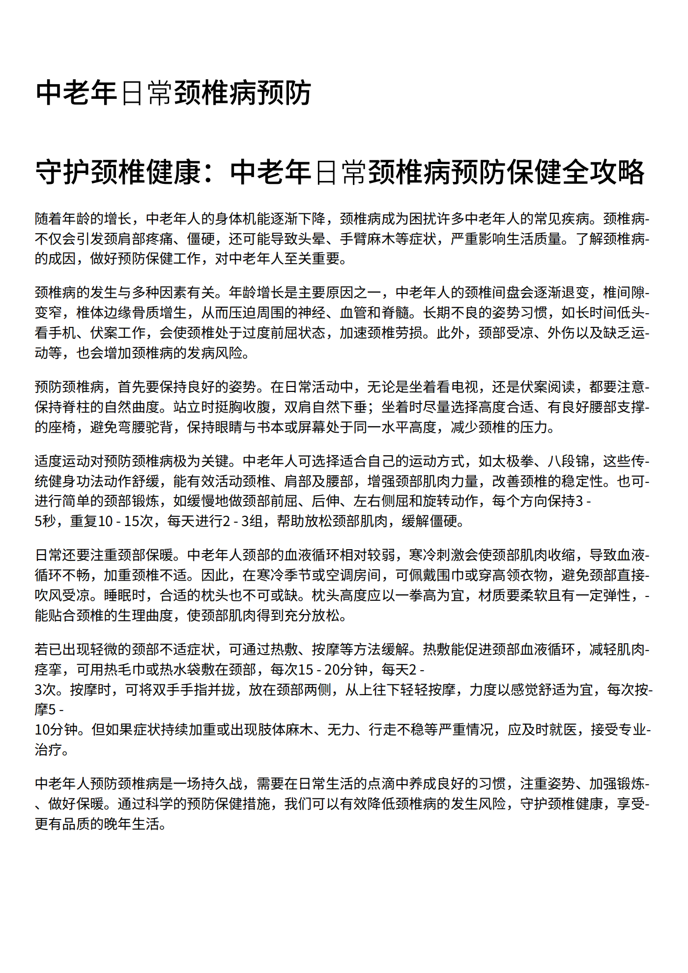 中老年日常颈椎病预防
