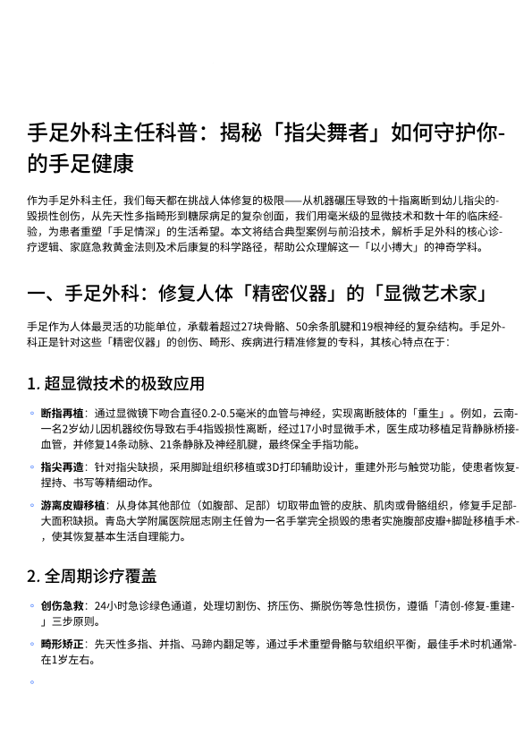 手足外科主任科普:揭秘「指尖舞者」如何守护你的手足健康