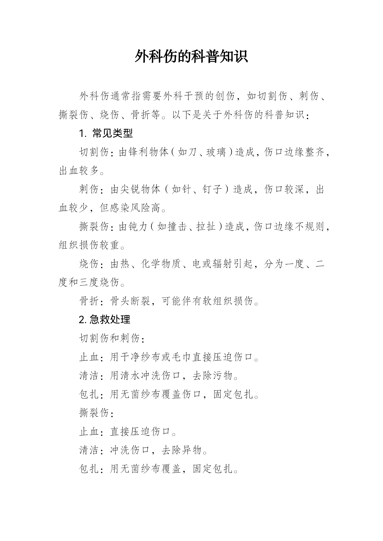 外科伤的科普知识