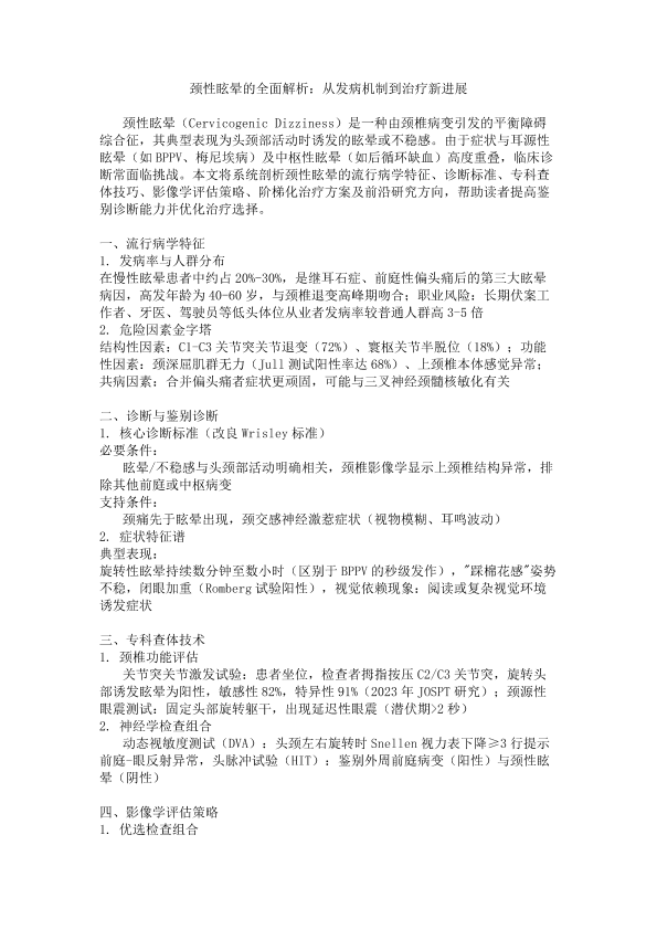 科普文章-颈性眩晕的全面解析:从发病机制到治疗新进展-秋宇典