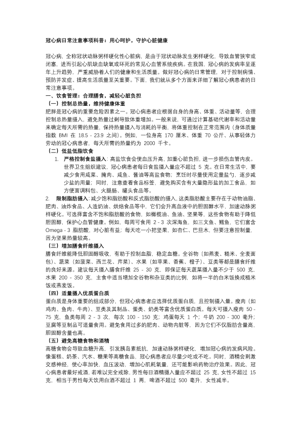 冠心病日常注意事项科普:用心呵护,守护心脏健康