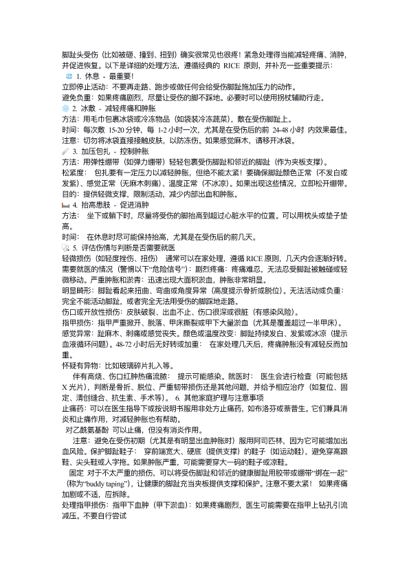 脚趾头受伤(⽐如被砸、撞到、扭到)后的处理