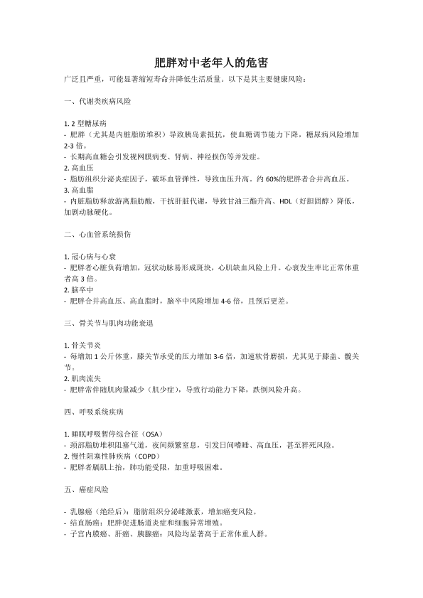 肥胖对中老年的危害