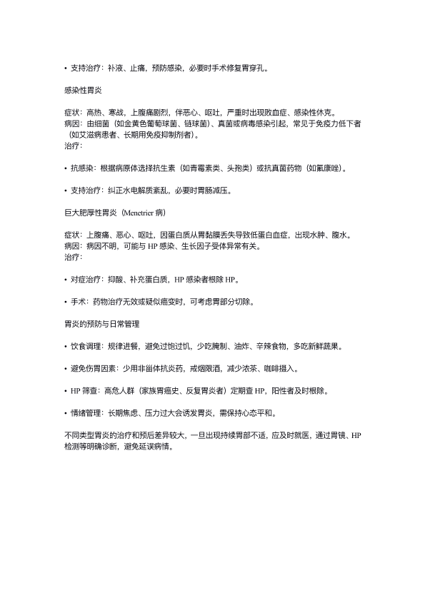 不同类型胃炎的症状、病因及治疗