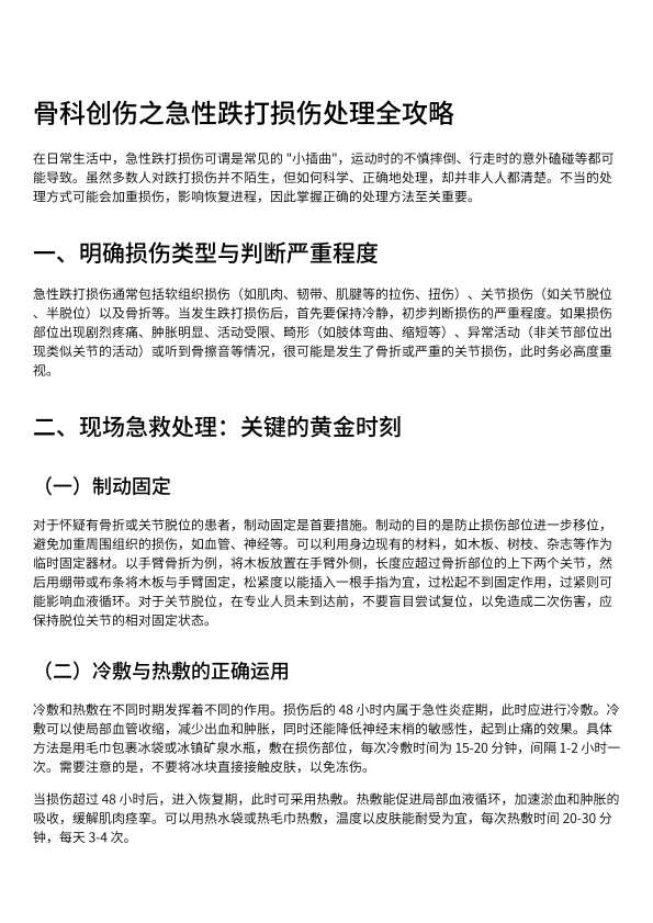 骨科跌打损伤处理