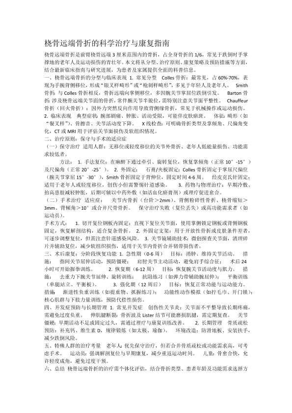 桡骨远端骨折的科学治疗与康复指南