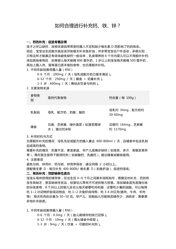 如何合理补充钙、铁、锌