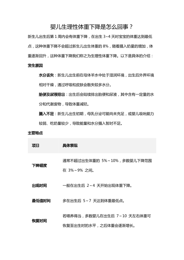 婴儿生理性体重下降是怎么回事?