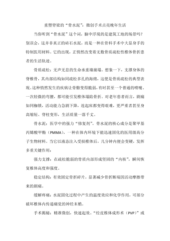 重塑脊梁的“骨水泥”:微创手术点亮晚年生活+耿朝