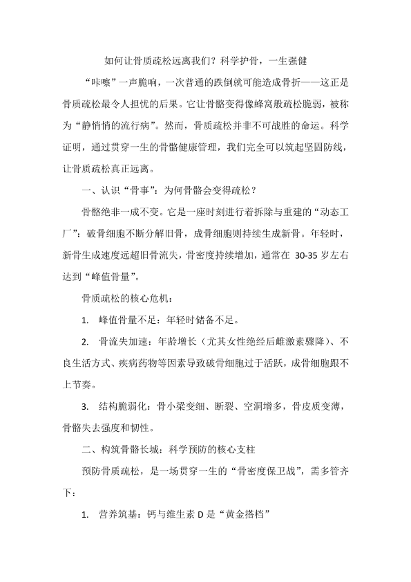 如何让骨质疏松远离我们?科学护骨,一生强健