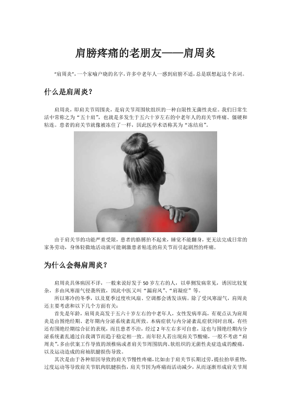 肩膀疼痛的老朋友——肩周炎