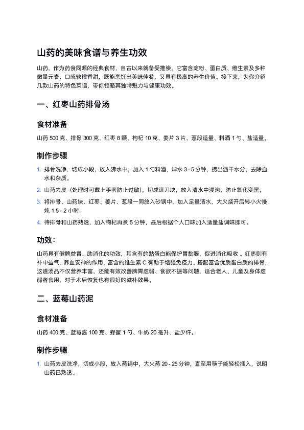 山药的美味食谱与养生功效