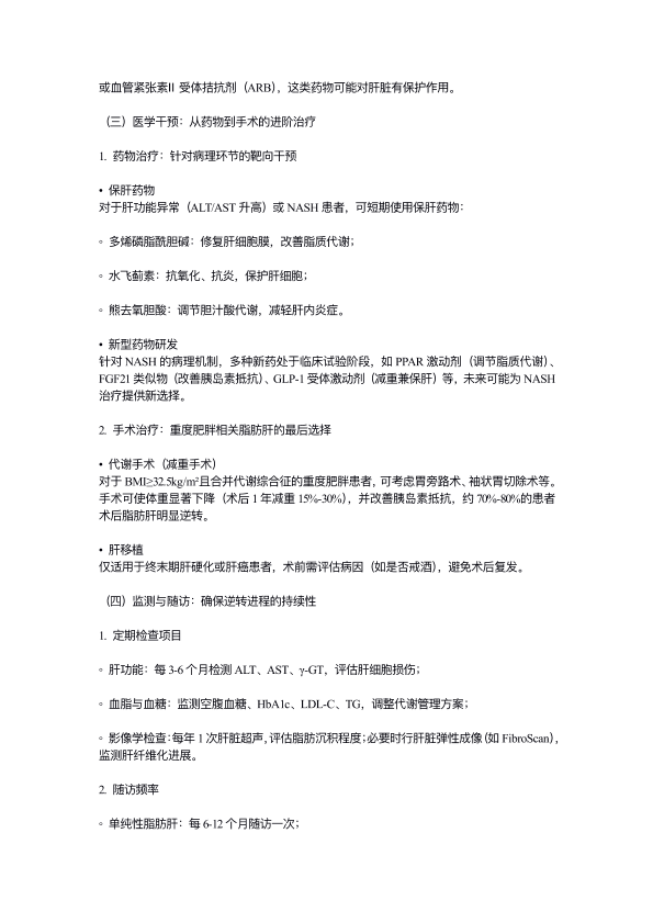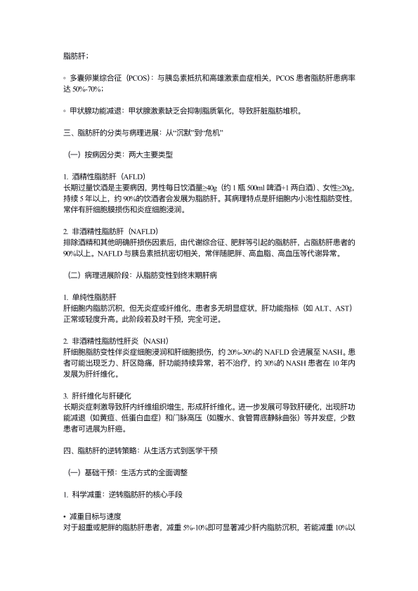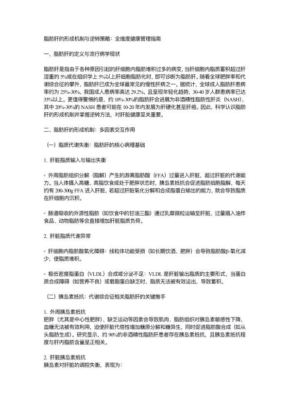 脂肪肝的形成机制与逆转策略