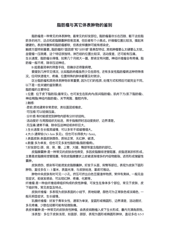 脂肪瘤与其它体表肿物的鉴别