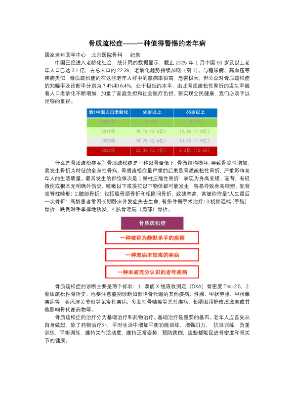 骨质疏松症,一种值得警惕的老年病