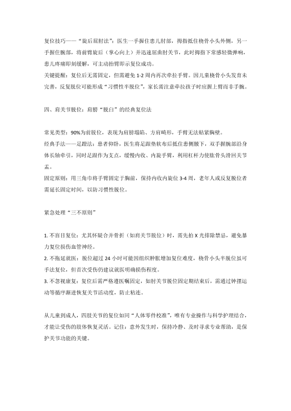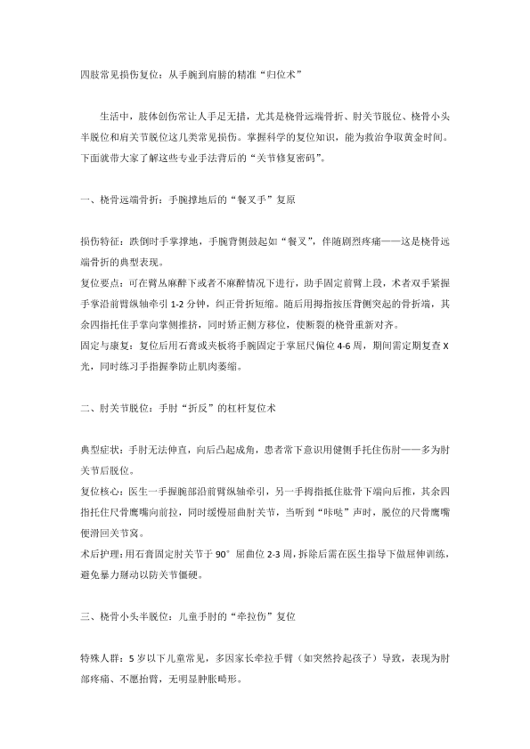 四肢常见损伤复位:从手腕到肩膀的精准“归位术”