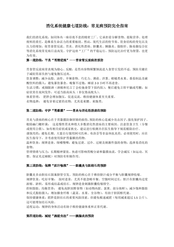 消化系统健康七道防线