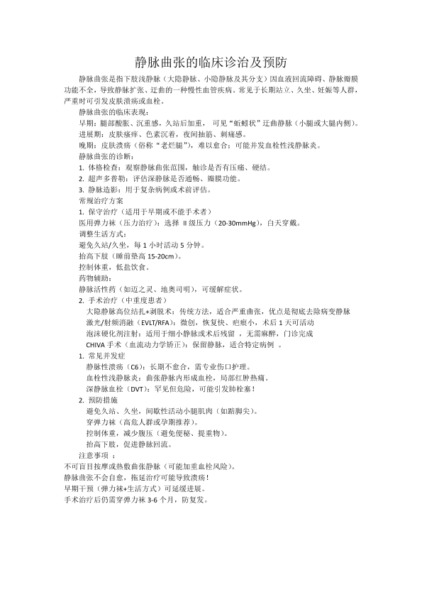 静脉曲张的诊治及预防