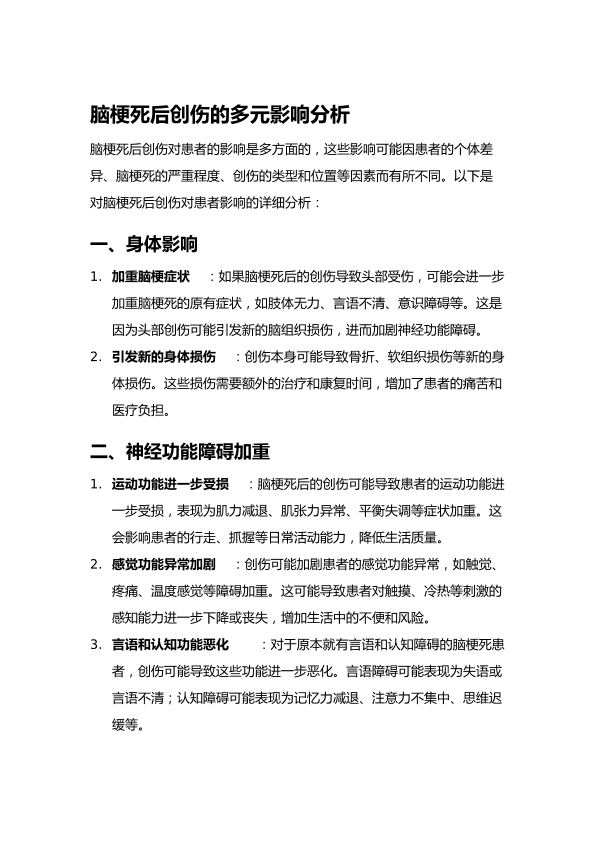 脑梗死后创伤的多元影响分析