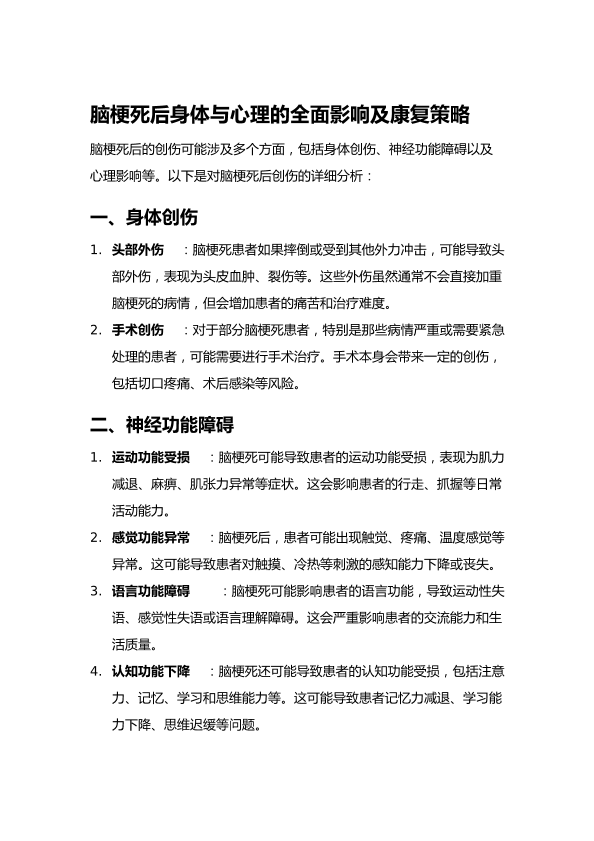 脑梗死后身体与心理的全面影响及康复策略
