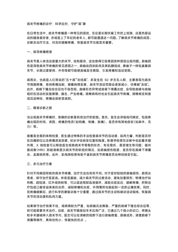 肩关节疼痛的诊疗:科学应对,守护“肩”康