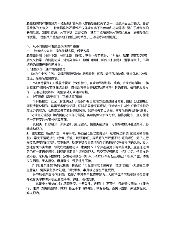 膝盖损伤的严重性绝对不能轻视