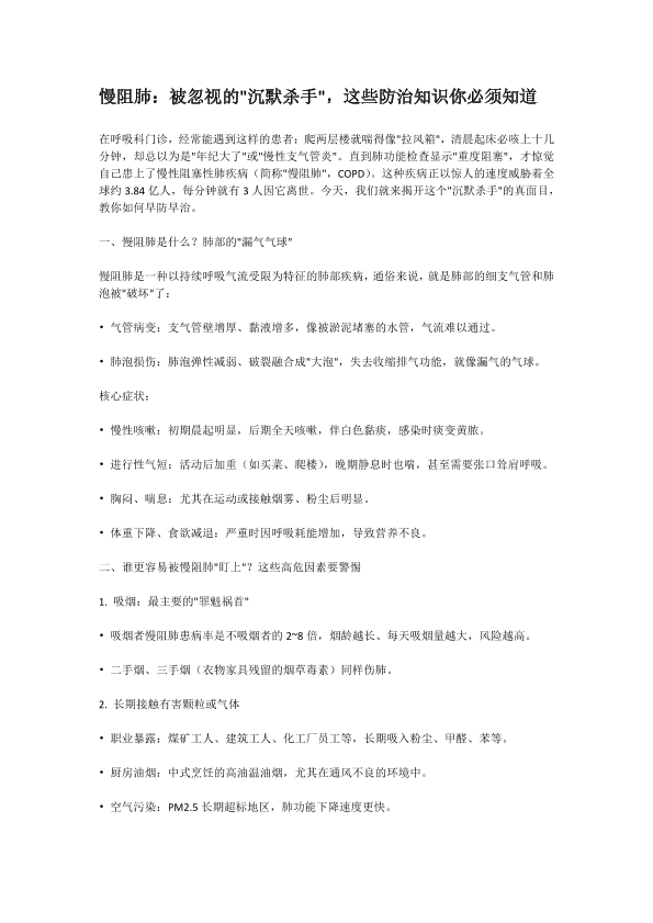 慢阻肺——被忽视的沉默杀手