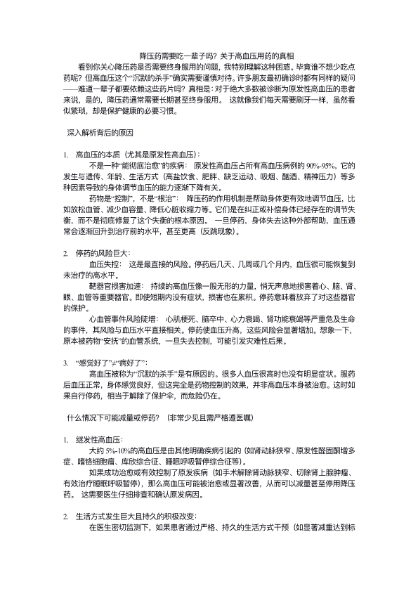 关于高血压用药的真相