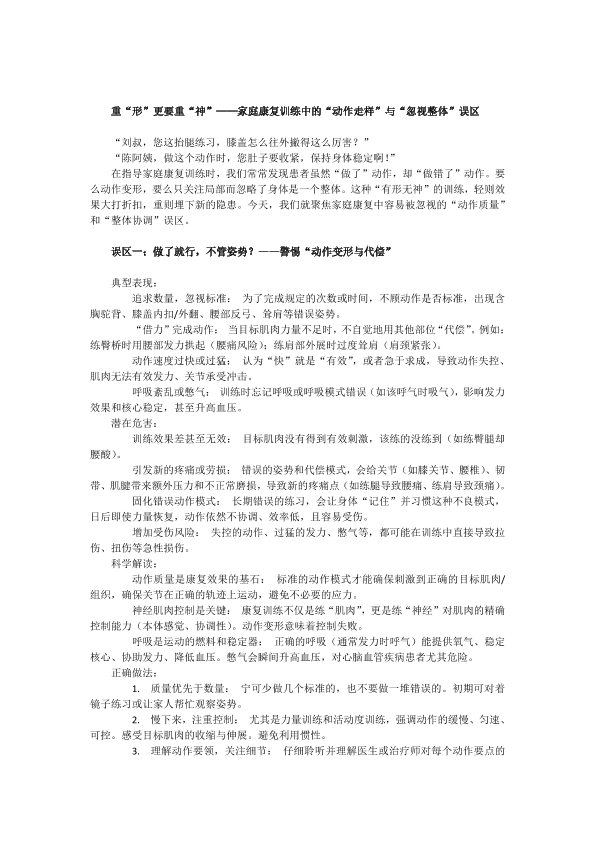 重“形”更要重“神”—家庭康复训练中的“动作走样”与“忽视整体”误区