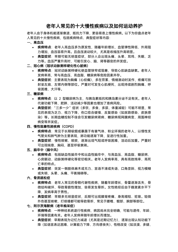 老年人常见的十大慢性疾病以及如何运动养护