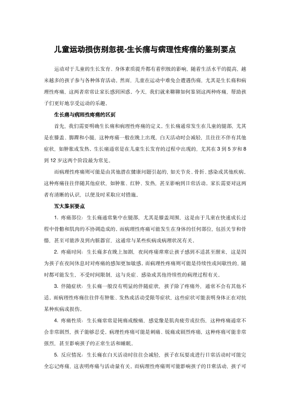 儿童运动损伤别忽视-生长痛与病理性疼痛的鉴别要点
