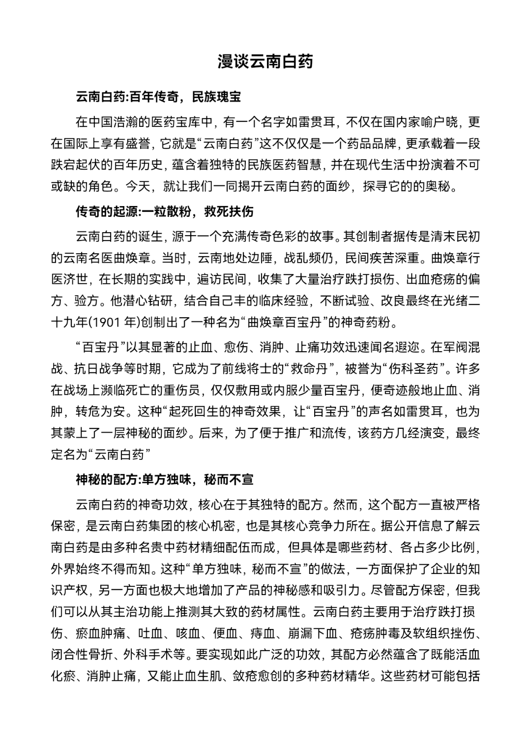 漫谈云南白药