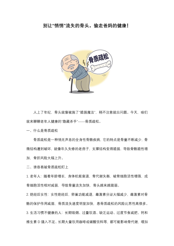 别让“悄悄”流失的骨头,偷走爸妈的健康!