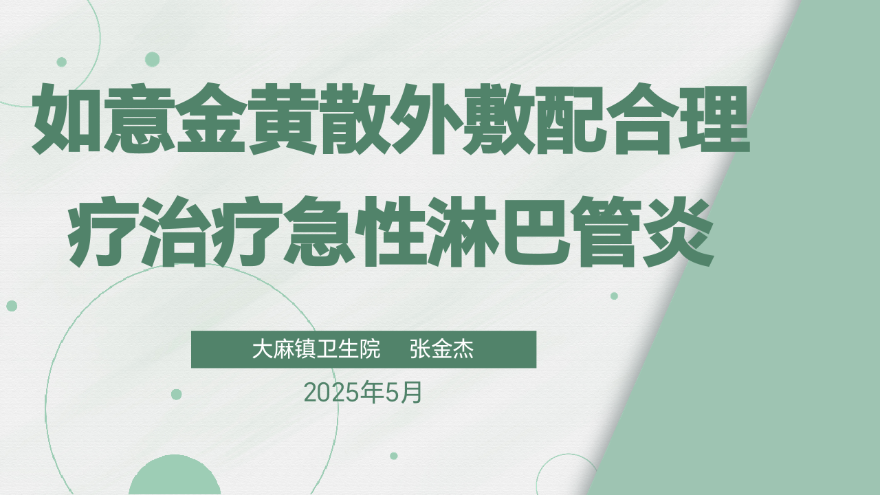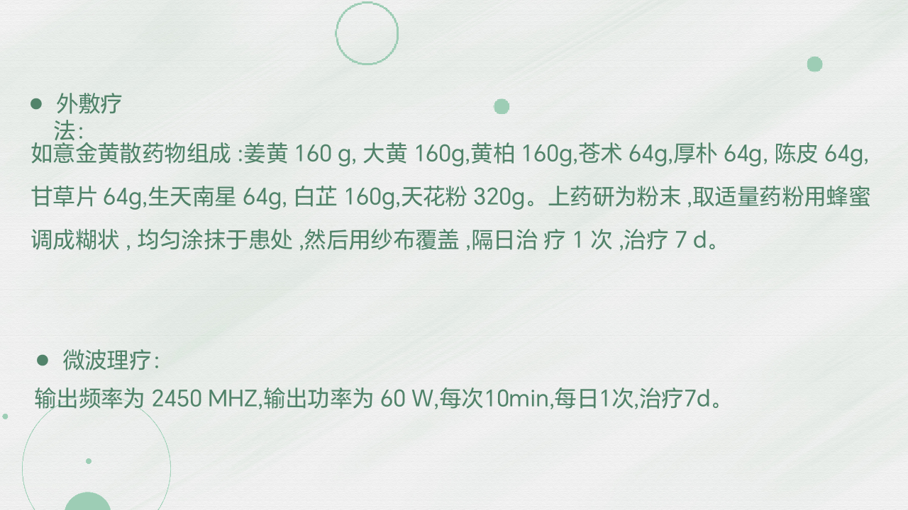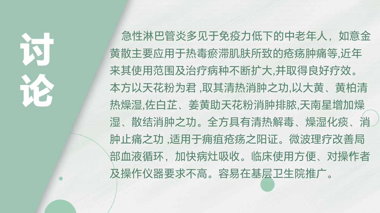 如意金黄散外敷配合理疗治疗急性淋巴管炎