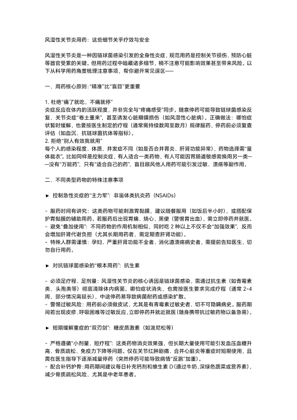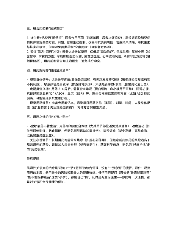 风湿性关节炎用药注意事项