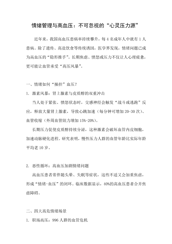 情绪管理与高血压:不可忽视的“心灵压力源”