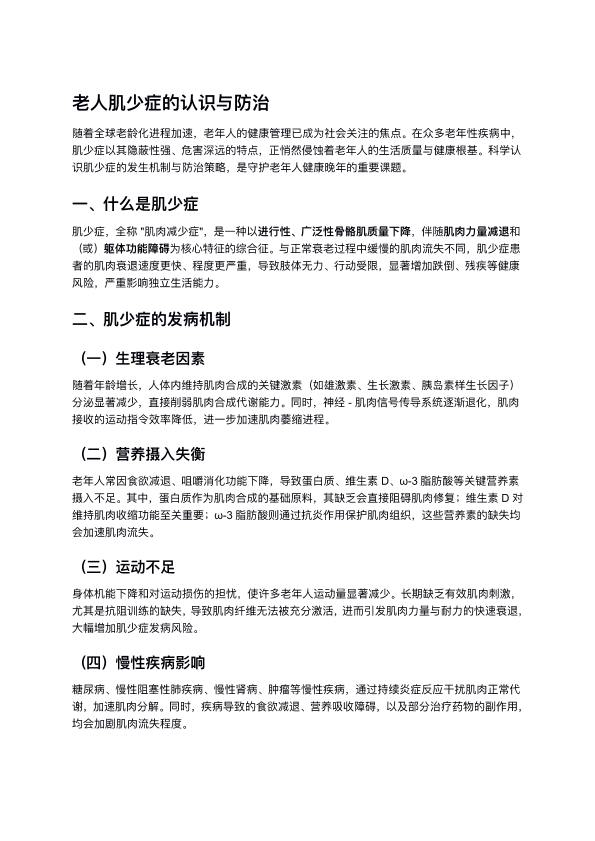 老人肌少症的认识与防治