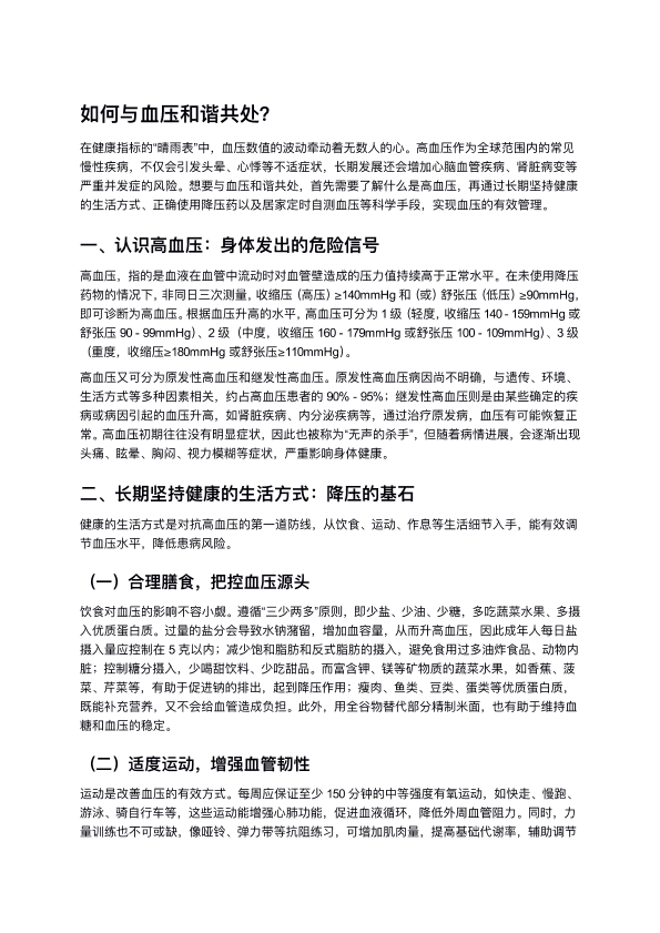 如何让血压与我们和谐相处