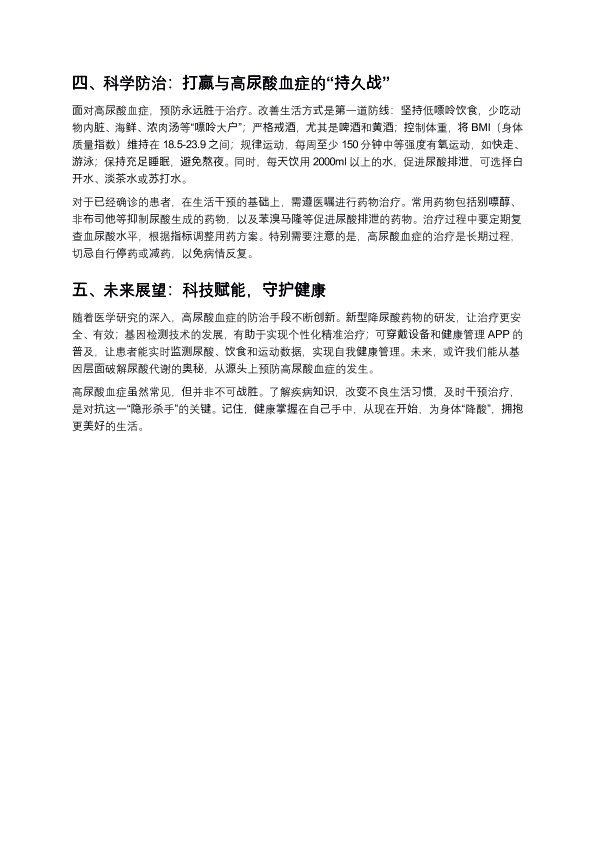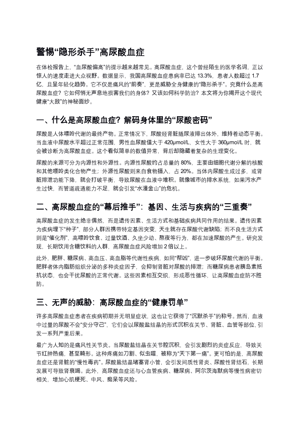 警惕“隐形杀手”高尿酸血症