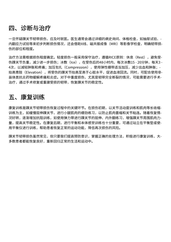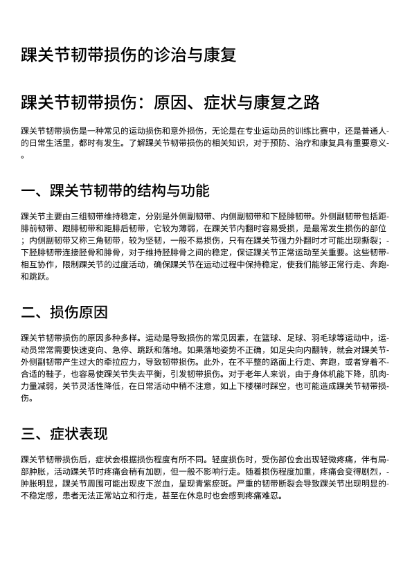 踝关节韧带损伤的诊治与康复