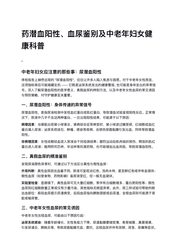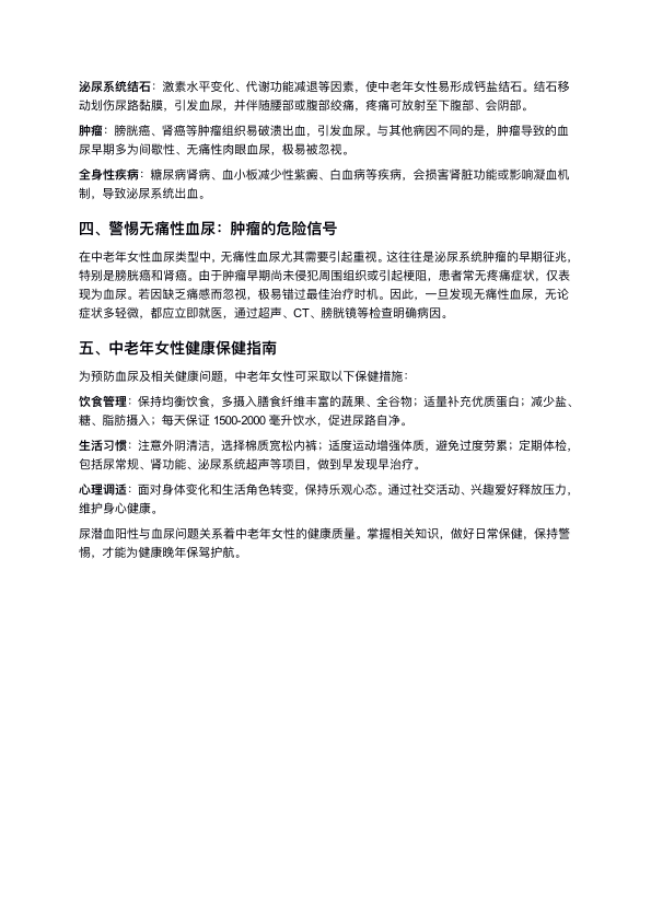 尿潜血阳性、血尿鉴别及中老年妇女健康