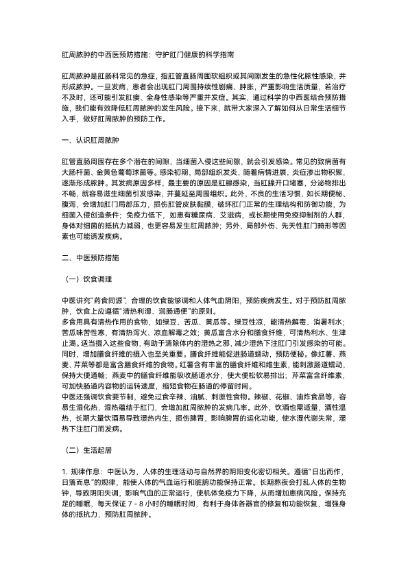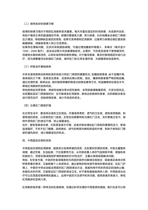 肛周脓肿的中西医预防措施
